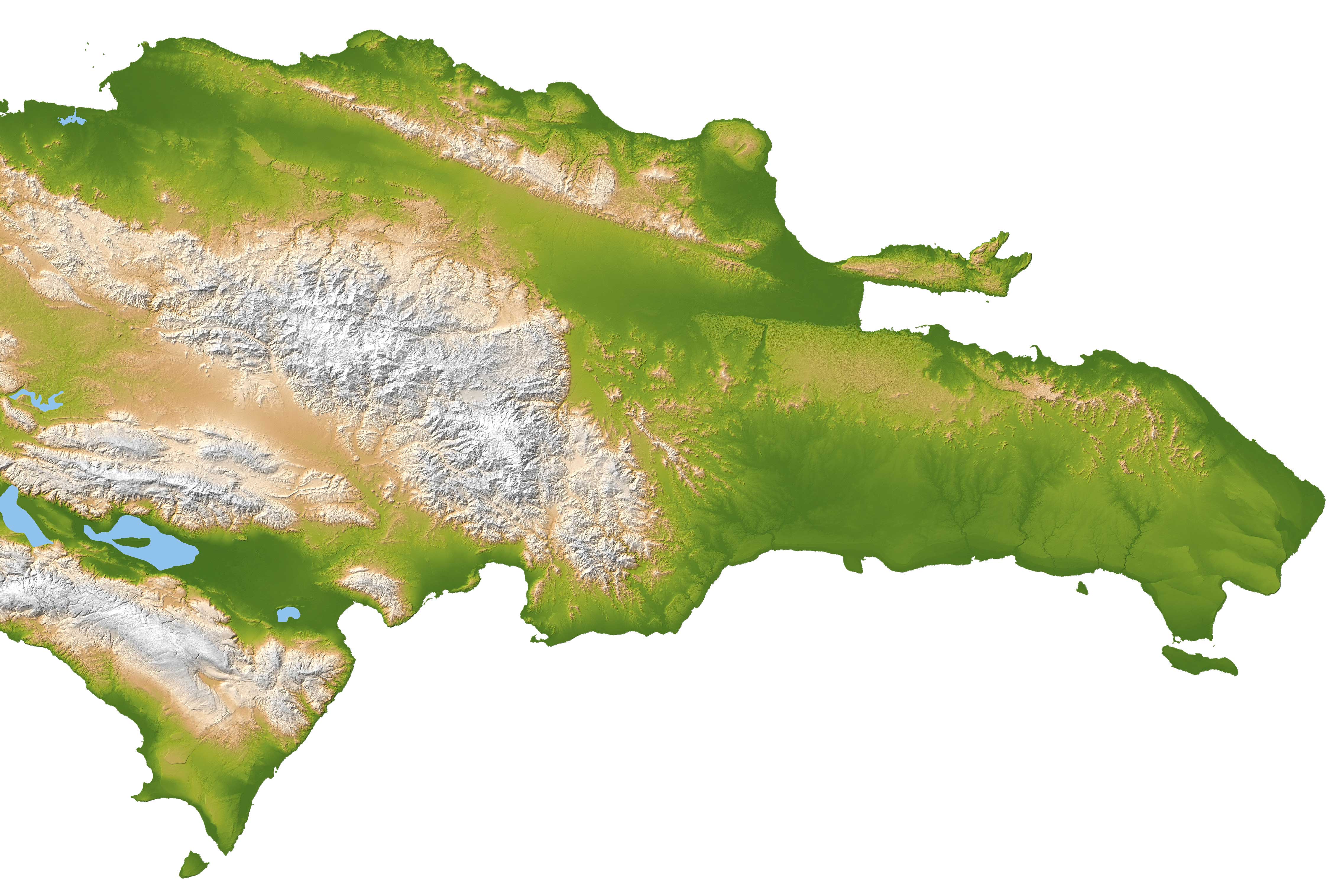Raster Relief map of the Dominican Republic, exact scale, the ability to bind to the coordinates.