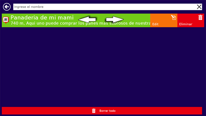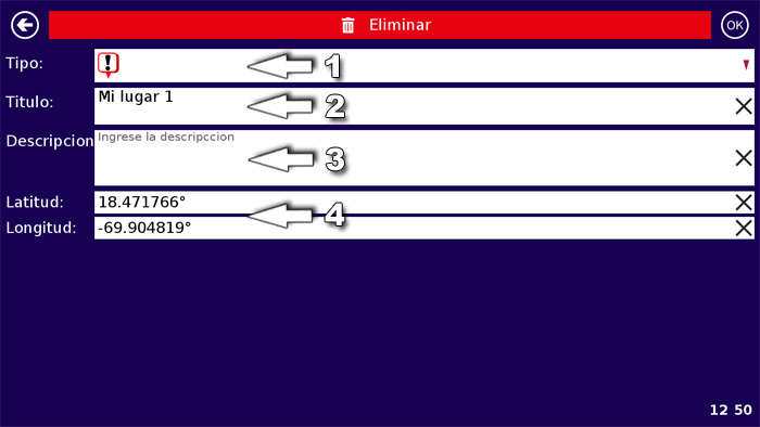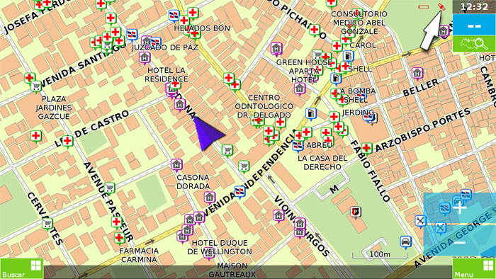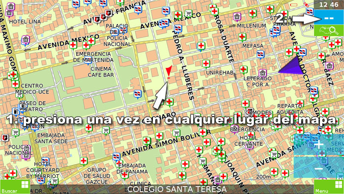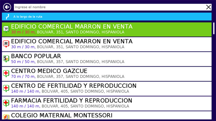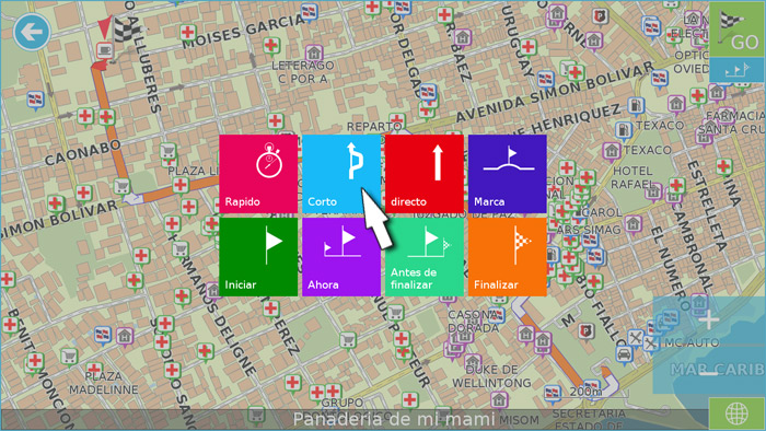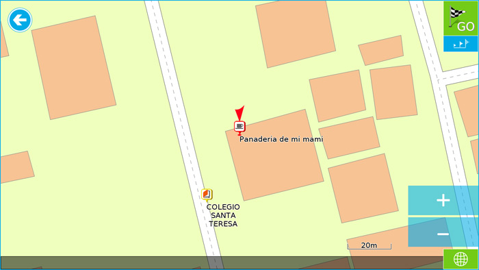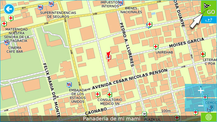 Si presiona una vez al punto (sin mover el dedo del lado al aldo) se le mostrara en el mapa. Presiona «GO» para que el dispositivo le guia a este lugar:
