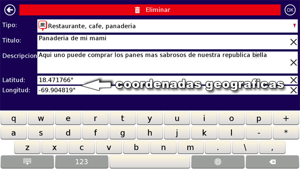 No se le olvida poner el signo del grado al final de la coordenada. Aqui hemos ingresado las mismas coordenadas de la «Panaderia de Mami».