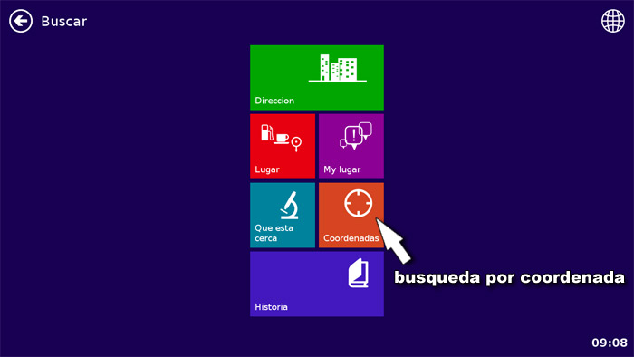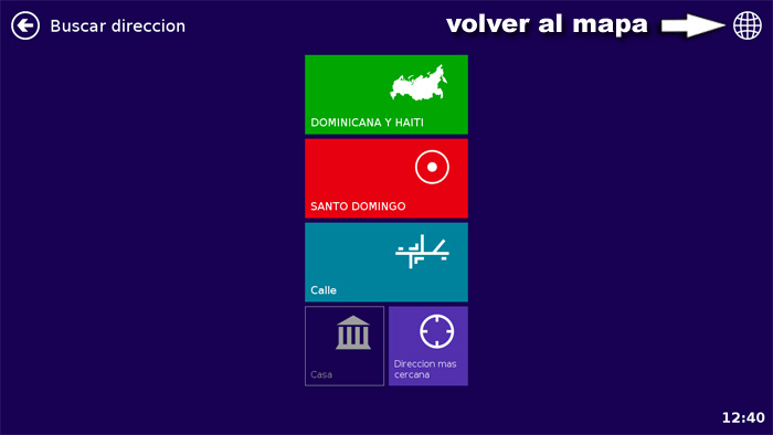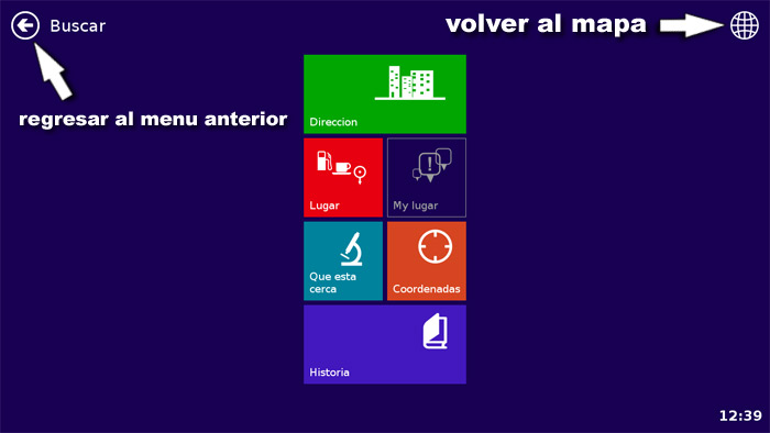 NOTA: En cualquier lugar del menu tiene la opcion de volver al mapa. О la flecha para regresar al menu anterior.