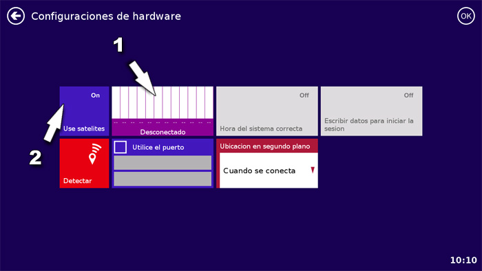 2. «Use satelites» tiene que estar azul.