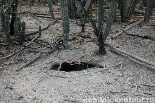 Points: National Park – the entrance to the National Park, where you can hire a boat to reach the island Isla Cabritos – an island inhabited by iguanas. Kamping Place – a wonderful place on the seacost, where you can cook barbecue Guarocuya Hotel – a hotel in Barahona, the first line; reasonably priced and decent enough Description: When leaving Barahona, you will see a part of the remaining railroad. It was formerly employed by the passenger train service; now, it is only used to transport cane to a near sugar mill. The track presents one of the two routes between Barahona and the lake with crocodiles and iguanas. This region belongs to the National Park. Two iguana species, Iguana Rinoceronte and Iguana Ricordi, naturally inhabit this place. Therewith, the latter is endemic and entered into the International Red Book as an endangered species (less than 2,000 animals remain in nature). You may see iguanas as early as you approach the lake along the road. Moreover, there are special signs “Caution! Iguanas crossing the road!” The iguanas avoid people, since the natives hunt them for food or because of the superstition that they are dangerous for the livestock. Though, within the National Park iguanas are protected; you will see totally different iguanas, as they come to people in hope of treat. There, the tourists and the Park employees entertain them with fruit (sometimes they simply feed out of hand). Though, there you can see Rhinoceros Iguanas only. To meet the Iguanas Ricordi, you will need a boat to get to Isla Cabritos, an island in the center of the lake (the boat costs 3,500 pesos, i.e. almost 100 dollars; it can transport up to 15 passengers). The length of the isle is 12 km, the width is 3 km. The area of the Lago Enrikillo amounts to 400 sq.m.; the lake is 40 m below sea level. The water salinity is threefold as that of seawater. If you depart by boat early in the morning (at 6-7 a.m.), it is much more likely that you will see the crocodiles. That is why we recommend you to arrange the excursion with the guides beforehand, by phone. Since if you come out of the blue, you will meet with the guides not earlier than at 9 a.m., when it is much harder to see the crocodiles. Again, even if you have departed early in the morning, it is not so easy to see them, as there are about 400 crocodiles in the huge lake. Still you are sure to see the iguanas. Beside the familiar Rhinoceros Iguanas, Iguana Ricordi also live on the island. They are featured by red eyes, a high spinal comb and a thorned tail. Unlike the Rhinoceros Iguanas, they are not recommended to be hand-fed. Beside the iguanas, the guides will show you many cacti (there are more than 10 species), iguana holes and even a brood nest of wild bees. After the excursion you may stop by a small cafeteria in the Descubierta Town, to refresh yourself. Actually it is not a cafeteria, but an outdoor hearth, where they serve the typical Dominican meals: chicken, rice, vegetables. So, you can have a snack before the way back. On the map, we have marked a seashore spot near Barahona, where you can cook barbecue on open fire. Though there are some restaurants in Barahona too, we never neglect an opportunity to have a rest and a snack outside. What should you take with you? Money, binocular glasses (to see the crocodiles better), fruit and nuts (to treat the iguanas), a photo- and a video camera, an insect repellent. Guides’ phone numbers: 809 816 7441 (English, French) 809 880 0871 (Cap) 829 930 0141 (Guide Association)
