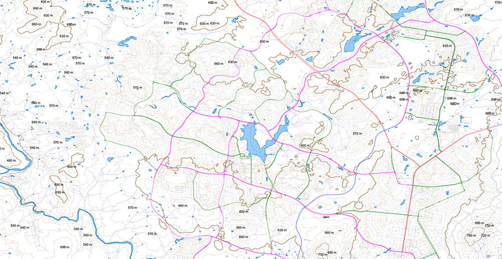 - Water objects areas (rivers, lakes, ponds)