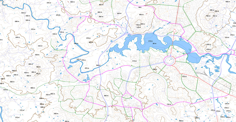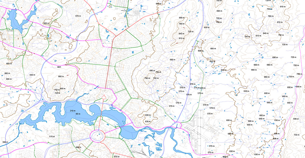For Laser Cutting and 3-D modelling Vector Map of Canberra Region Australia Relief + Isolines 30 meters, detailed fully editable DWG + PDF + Adobe Illustrator in layers, scalable, text/curves format all names, 157 MB ZIP