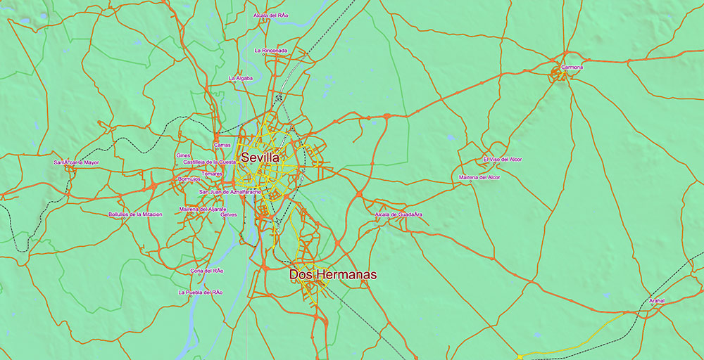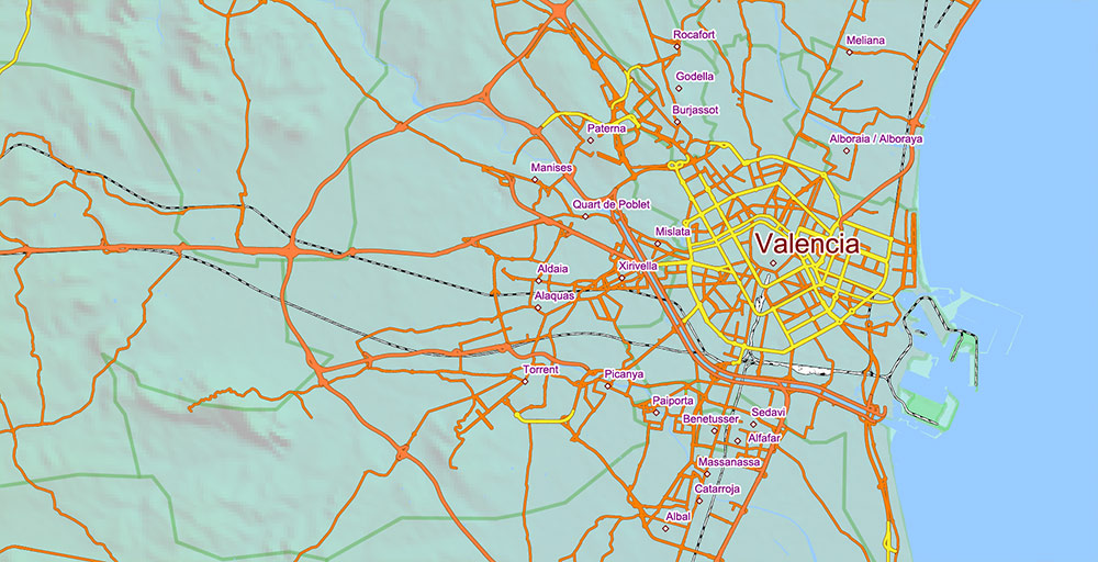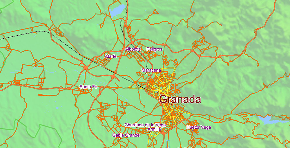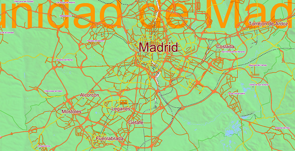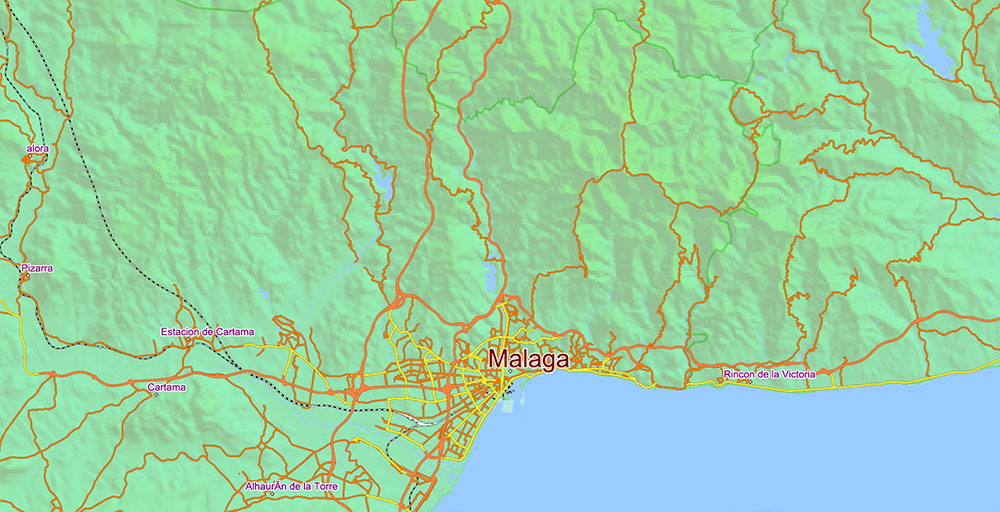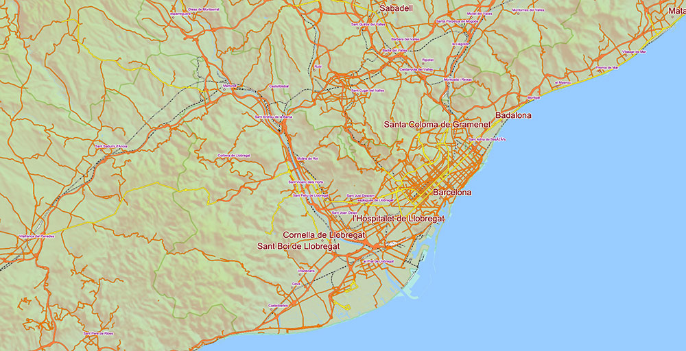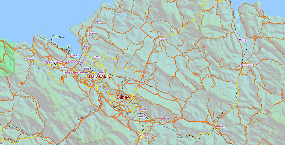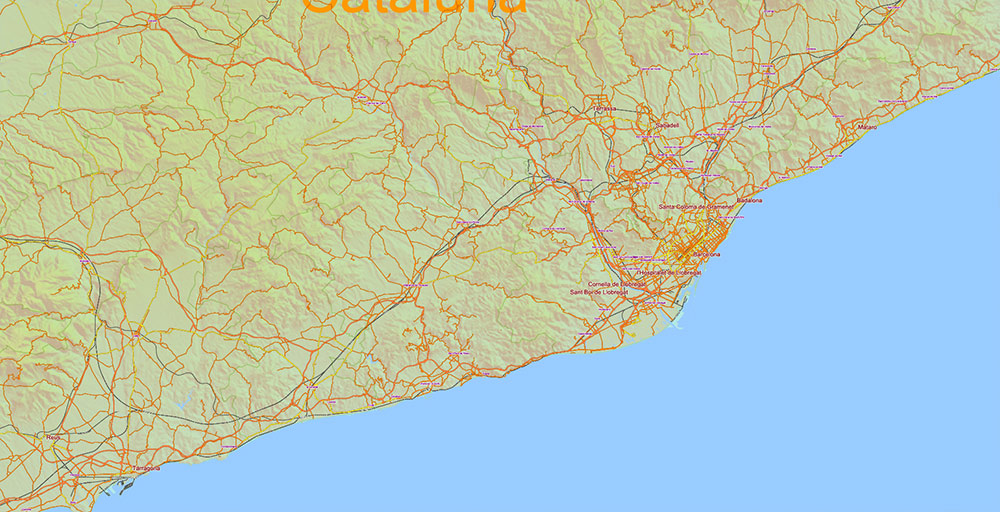 Printable Vector Map Spain, – Roads, Relief and Admin High Detailed Map in Mercator Projection fully editable, Adobe Illustrator in layers, full vector, scalable, curves/text format names, 237 mb ZIP